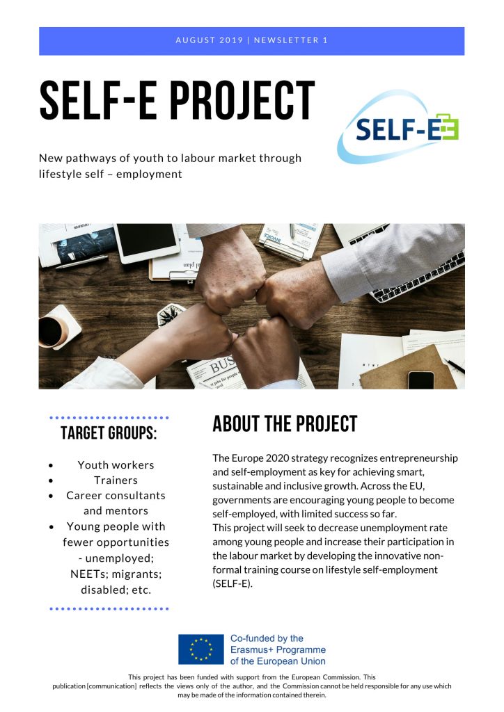 Dla projektu SELF-E: New pathways of youth to labour market through lifestyle self – employment, powstał pierwszy newsletter.